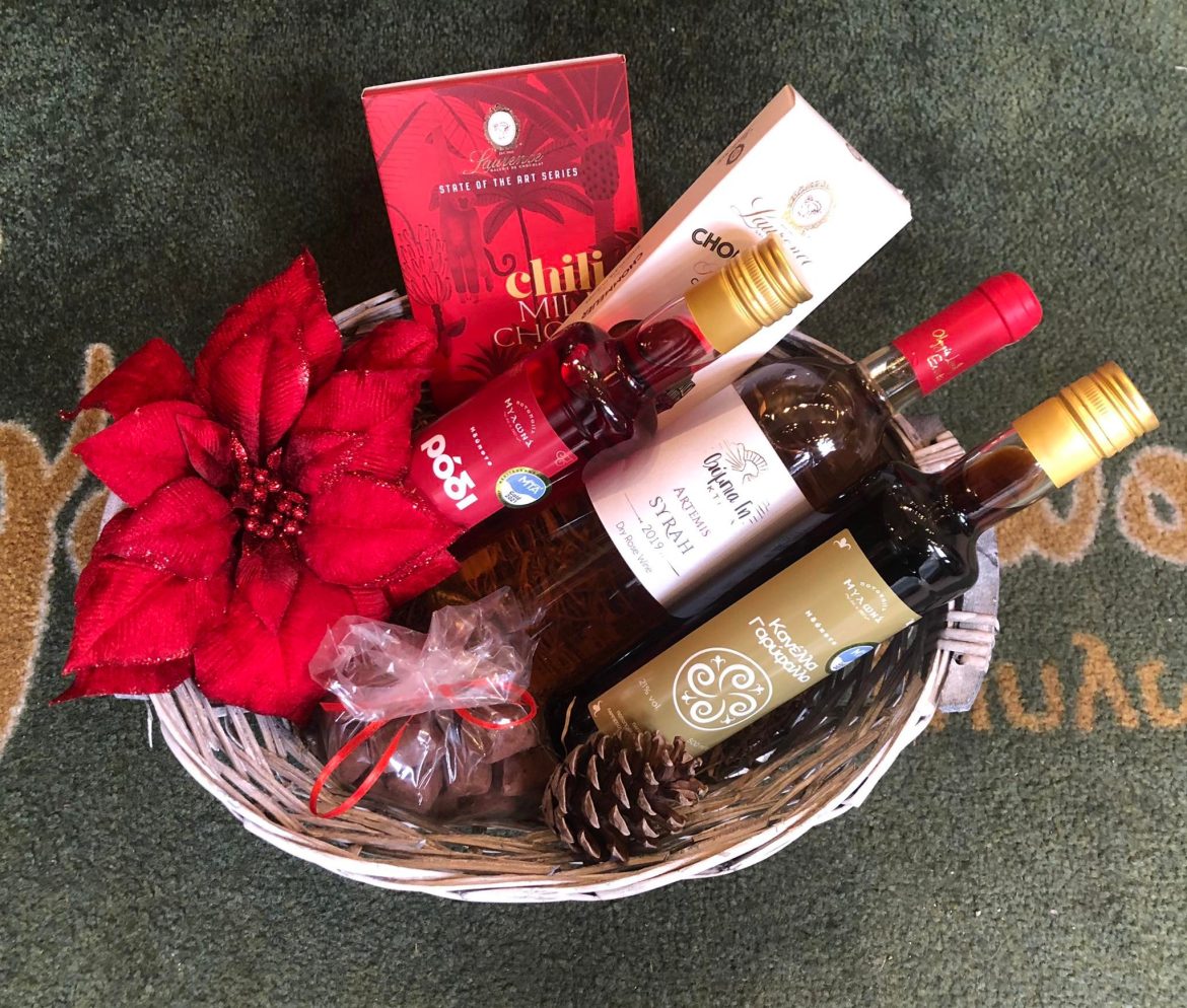 Τα καλάθια με τα δώρα, τα γλυκά, τα διακοσμητικά κι ένα φύλλο με κεράσματα και το νέο έτος. Φανταστείτε την έκφραση τους. Γιατί η μεγαλύτερη χαρά είναι να προσφέρεις. Όπως μας αρέσει να λέμε: Δίνω για να έχω και έχω για να δίνω. Στα χεράκια μου εφαπλώ κάθε τι αληθινό!